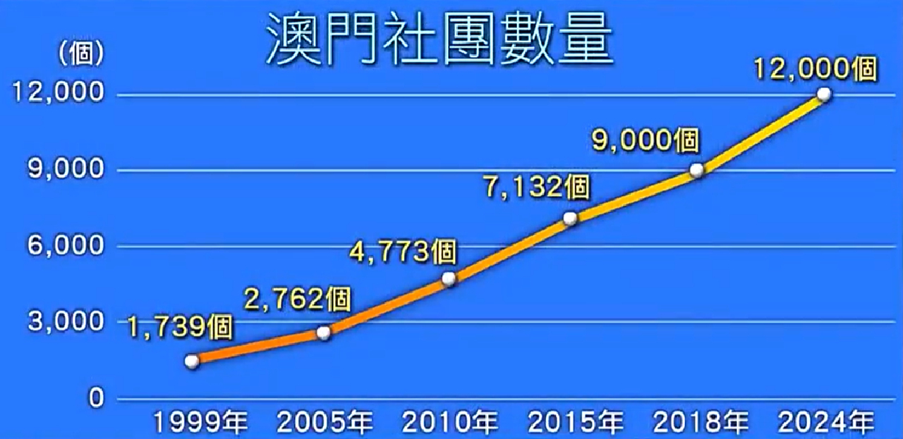 尋求工作、遇上勞資糾紛,不少澳門人會尋求社團的幫助,類似這樣的社團,在澳門多不勝數,使得澳門獲得了“社團社會”的稱號。回歸祖國25年,澳門社團數量從1700多個增長到現在近1.2萬個,增幅超過600%,平均每一百人就有一個社團。