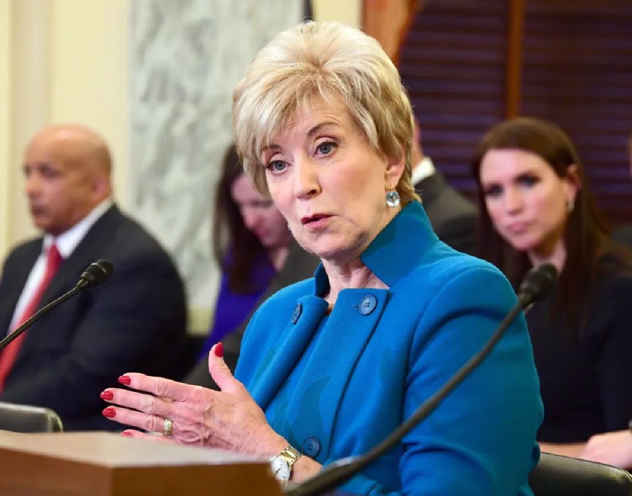 麥克馬洪被視爲商務部長的頭號候選人,曾擔任特朗普的小企業管理局局長。2019 年她卸任後,轉而領導支持特朗普的超級政治行動委員會“美國優先行動”。麥克馬洪和她的丈夫文斯·麥克馬洪是將世界摔跤娛樂公司從一家小企業轉變爲一家價值數十億美元的企業的幕後推手。她還是特朗普和共和黨的私人朋友和捐助者,十多年前曾競選康涅狄格州參議員,但沒有成功。離開特朗普政府後,麥克馬洪在創建保守的美國優先政策研究所方面發揮了關鍵作用,該研究所是一個由特朗普政府高層人物組成的智庫,目前是特朗普過渡期的聯合主席。她還是特朗普的社交媒體平台 Truth Social 的董事會成員。