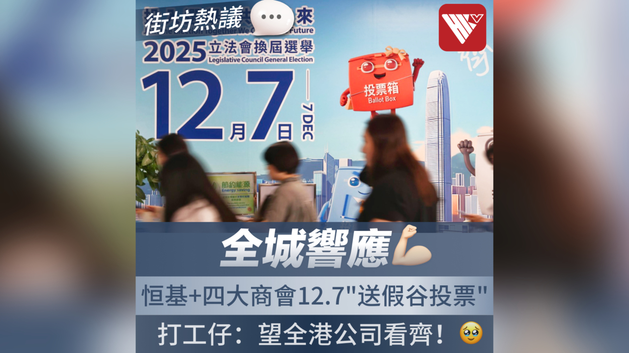 面對城中各大企業紛紛推出的"投票假",不少本港"打工仔"在社交媒體上坦言"羨慕",並紛紛留言希望"所有公司看齊",讓自己也能在12月7日,無後顧之憂地前往票站,履行應盡的公民責任。
